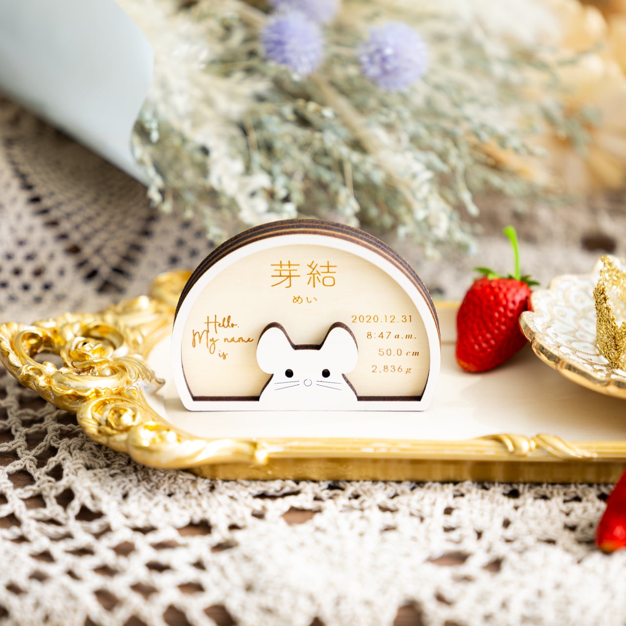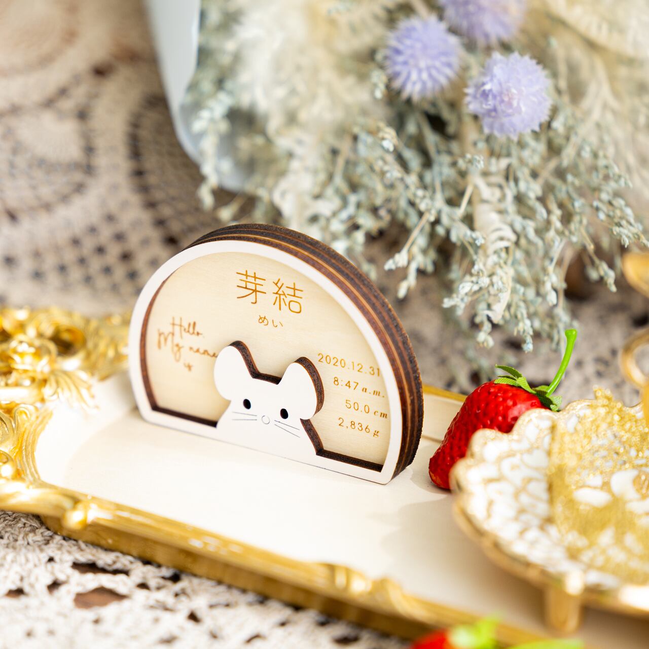 命名札・命名書⌇木製「My name is (ネズミ)」節句のお名前札にも◎¦出産祝い 記念品 干支 干支飾り 子 子年 ニューボーンフォト just born 撮影小物