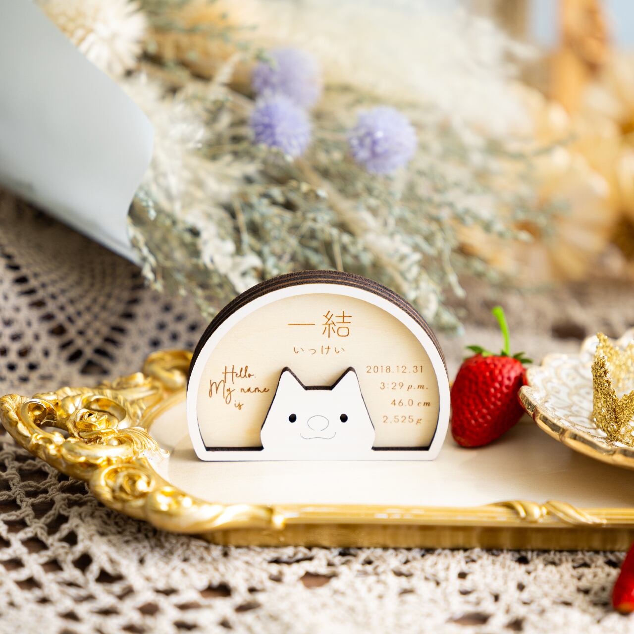 命名札・命名書⌇木製「My name is (イヌ)」節句のお名前札にも◎¦出産祝い 記念品 干支 干支飾り 犬 戌 戌年 ニューボーンフォト just born 撮影小物