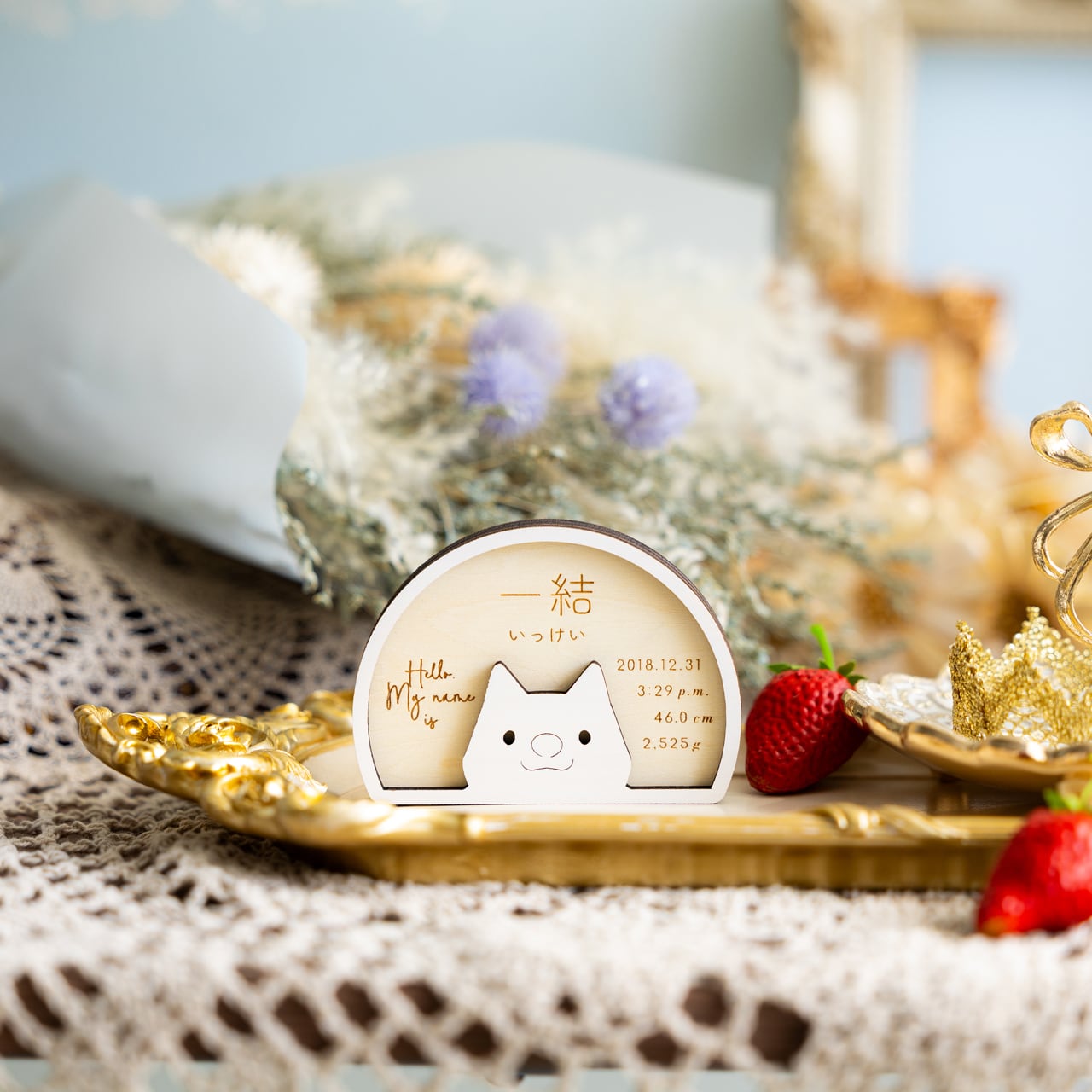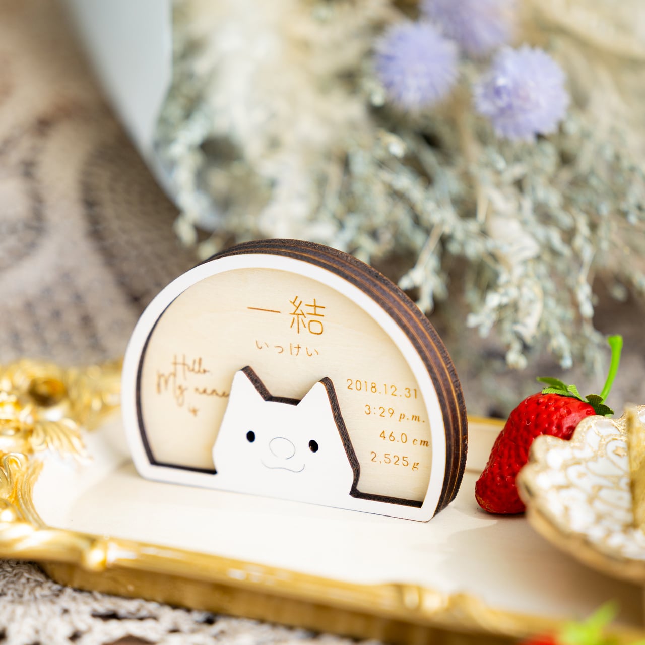 「周りの人々に愛され、健やかに、安心して育っていけますように」という願いを込めたこの命名札が、お子さまの毎日を優しく見守るお守りとなりますように。