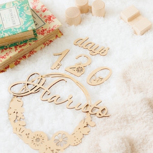 マタニティフォトからニューボーンフォトや百日祝い、バースデー記念まで、長く使えるお洒落な木製マンスリーカードです。