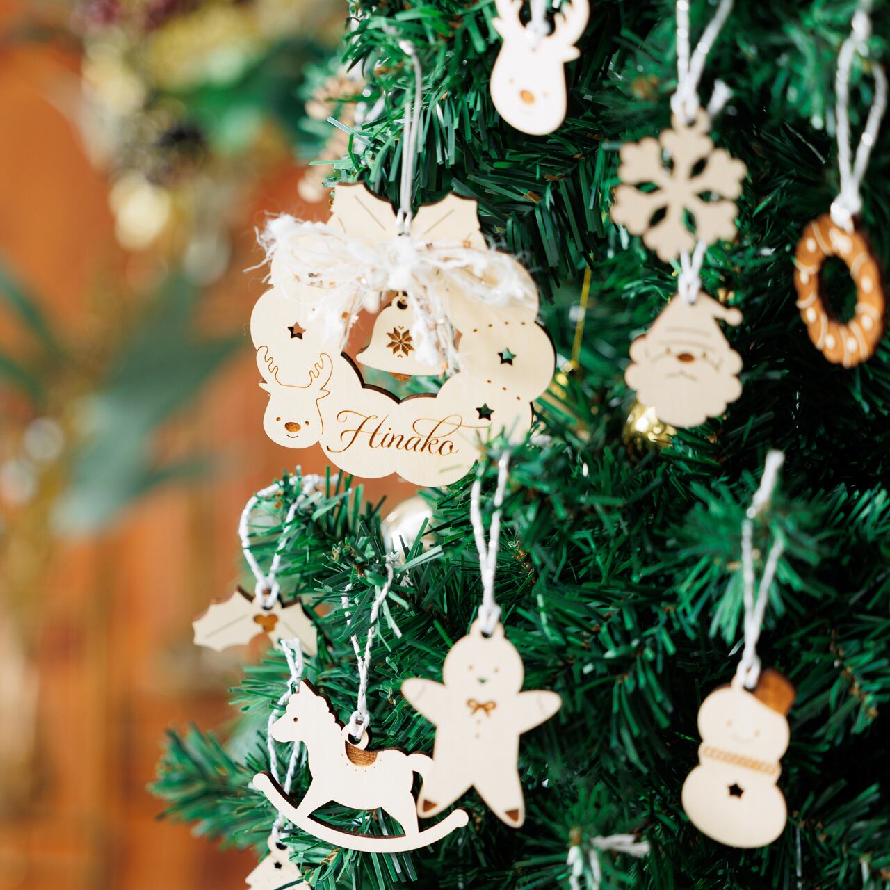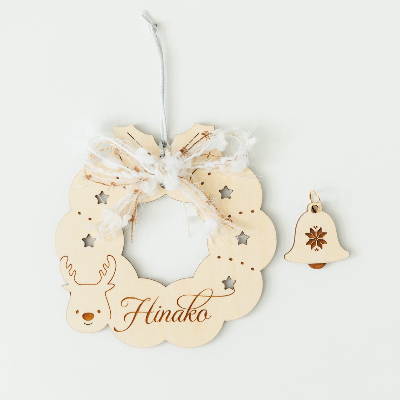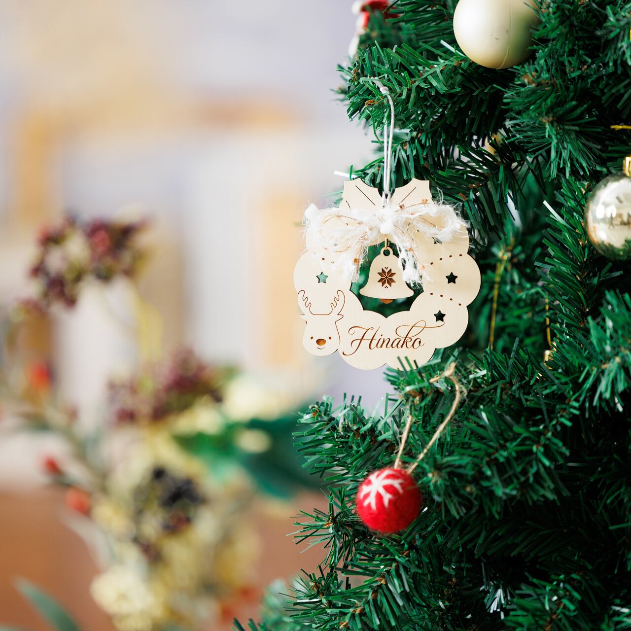 クリスマス⌇オーナメント, 名入れリース, 木製「Happy Holidays!」/記念撮影, クリスマスツリー, トナカイ