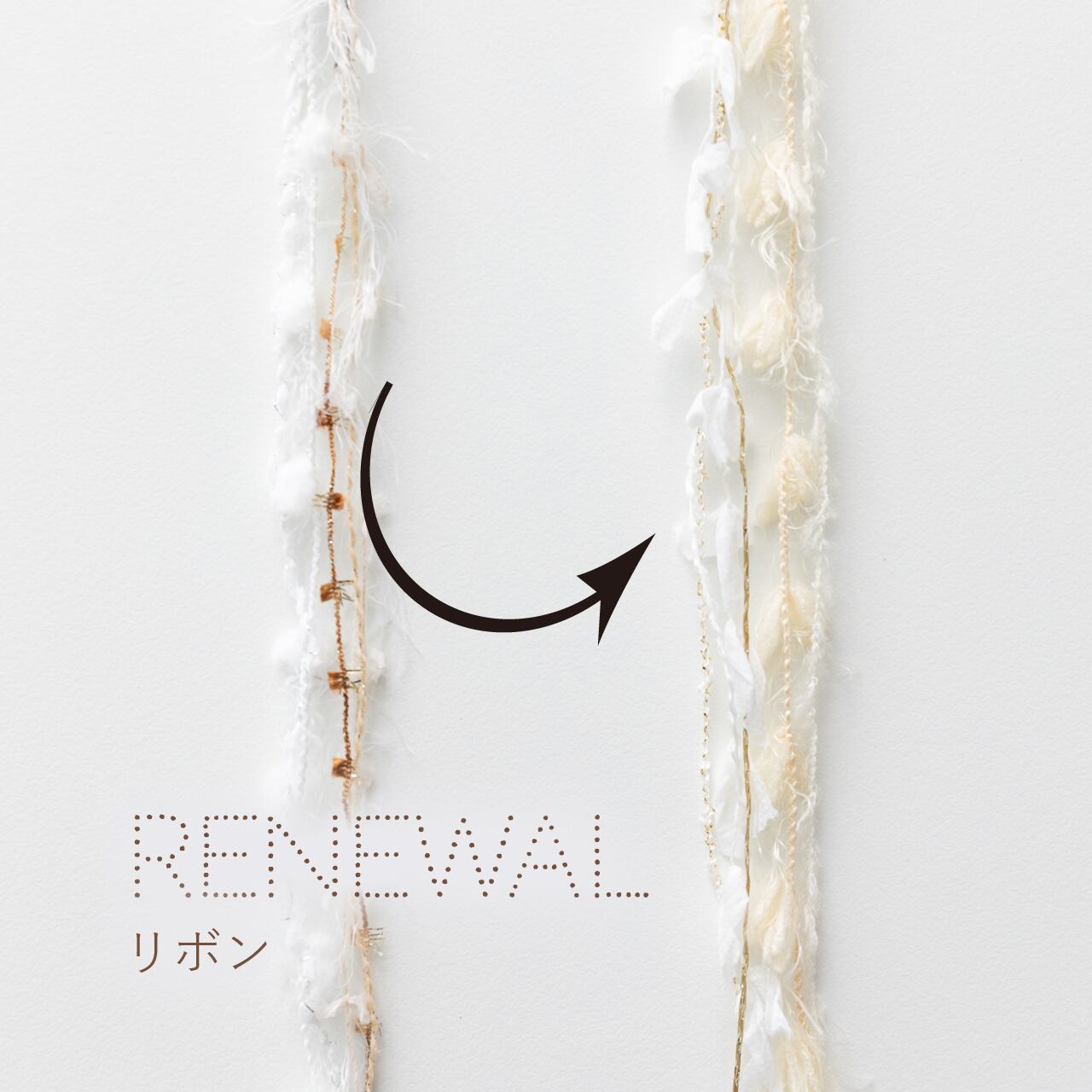 リボンはふわふわの白系の引き揃え糸、紐は銀色と、可愛らしいデザインながらも色合いはすっきりとまとめたため、優しくも甘すぎない雰囲気だと思います。