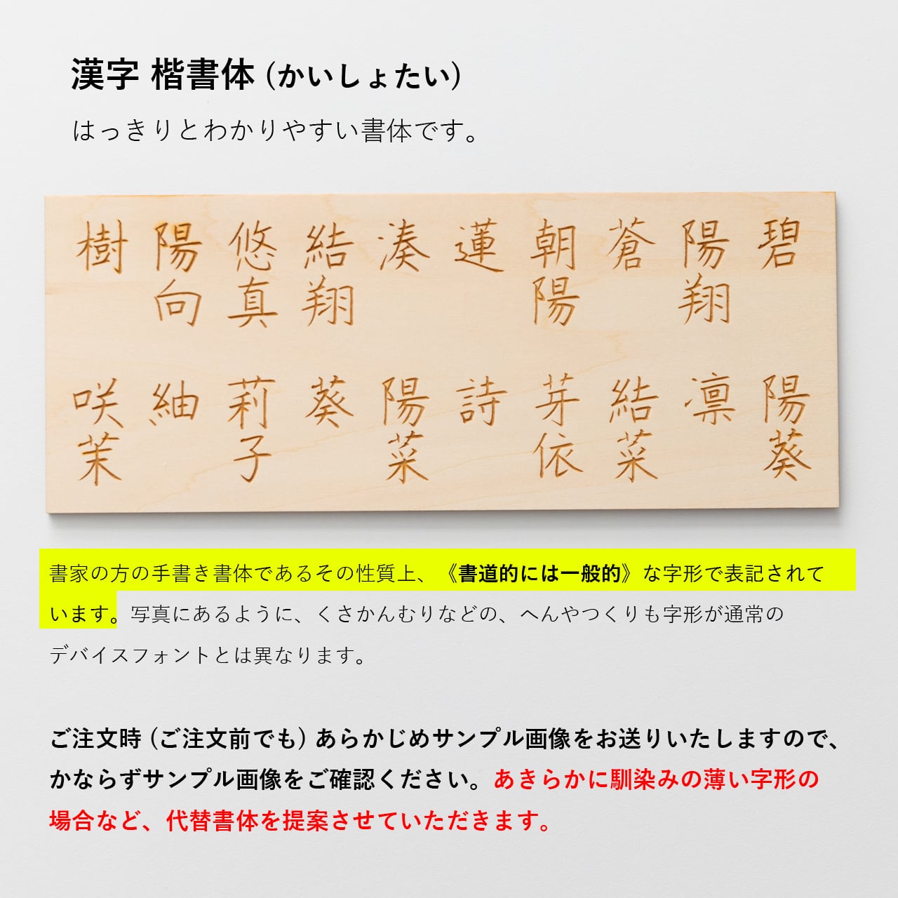 写真を参考に、書体をお選びください。